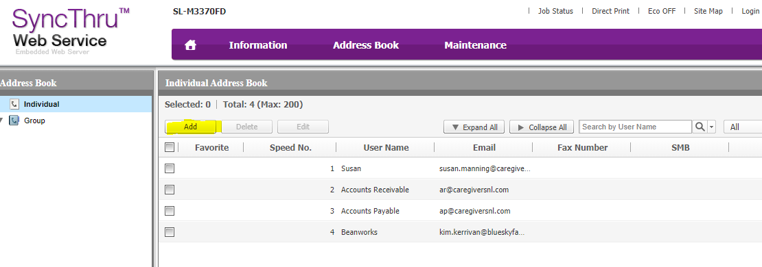 Pick Add to add your name and email if you need to remove any check the boxes of the ones you need to remove and hit delete
